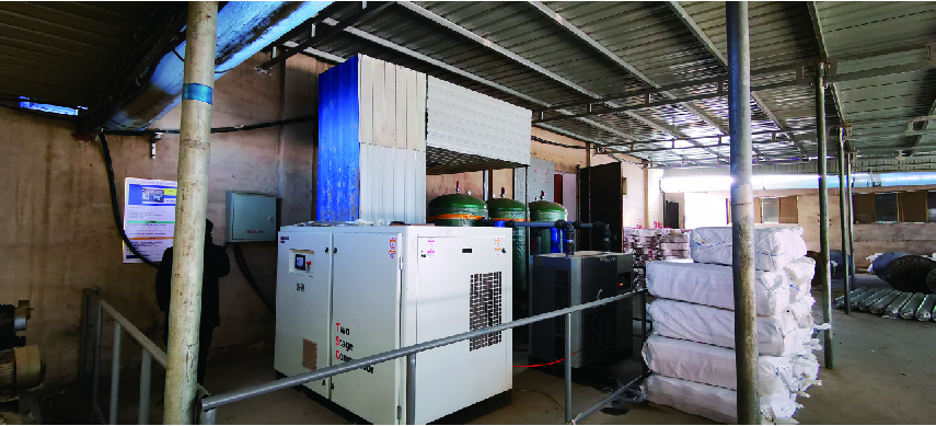 某北方紡織行業為當地龍頭企業,年產值15個億。產品遠銷東南亞及歐美地區。該廠原來使用90kw,8bar單級螺桿空壓機置換成優氣庫75KW,5bar兩級壓縮空壓機比原來節省電費40%左右。